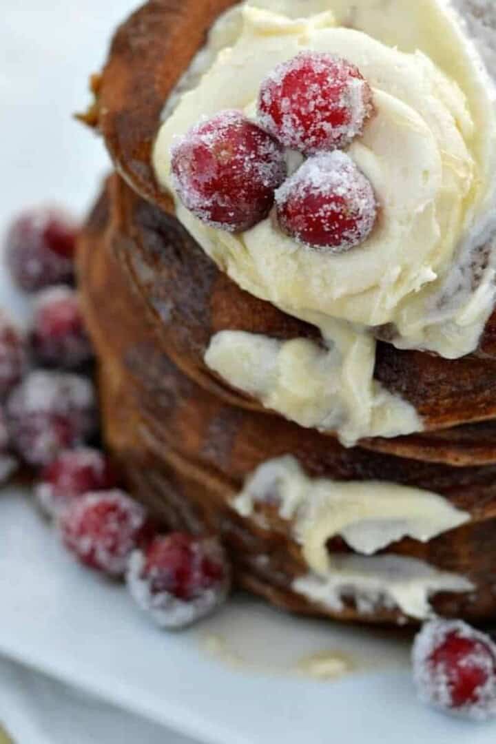 Gingerbread Pancakes with Sugared Cranberries
